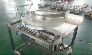 Langileak botilak elikatzeko mahaian jartzen ditu, orduan mahaiak botilak uhal garraiatzailera elikatuko ditu.